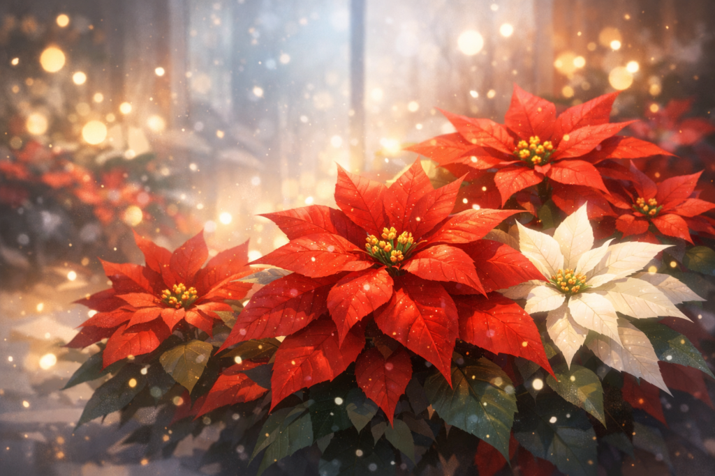 🌸 カザネのこころ風景画 ― 12月の花 と言えば― 1️⃣ 花の名前 ポインセチア(ポインセチア) 2️⃣ 生息地・咲く時期 原産地:メキシコ 日本での見頃:11月下旬〜12月 特… -