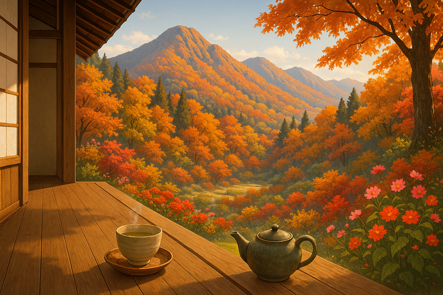 こころ風景画|秋の縁側で、静かにお茶を